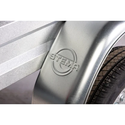 Le revêtement spécial aluminium-zinc (Galvalume®) des ridelles et le châssis galvanisé à chaud garantissent une grande insensibilité aux intempéries.Toutes les remorques Stema sont équipées de timons en V comme caractéristique de sécurité supplémentaire.